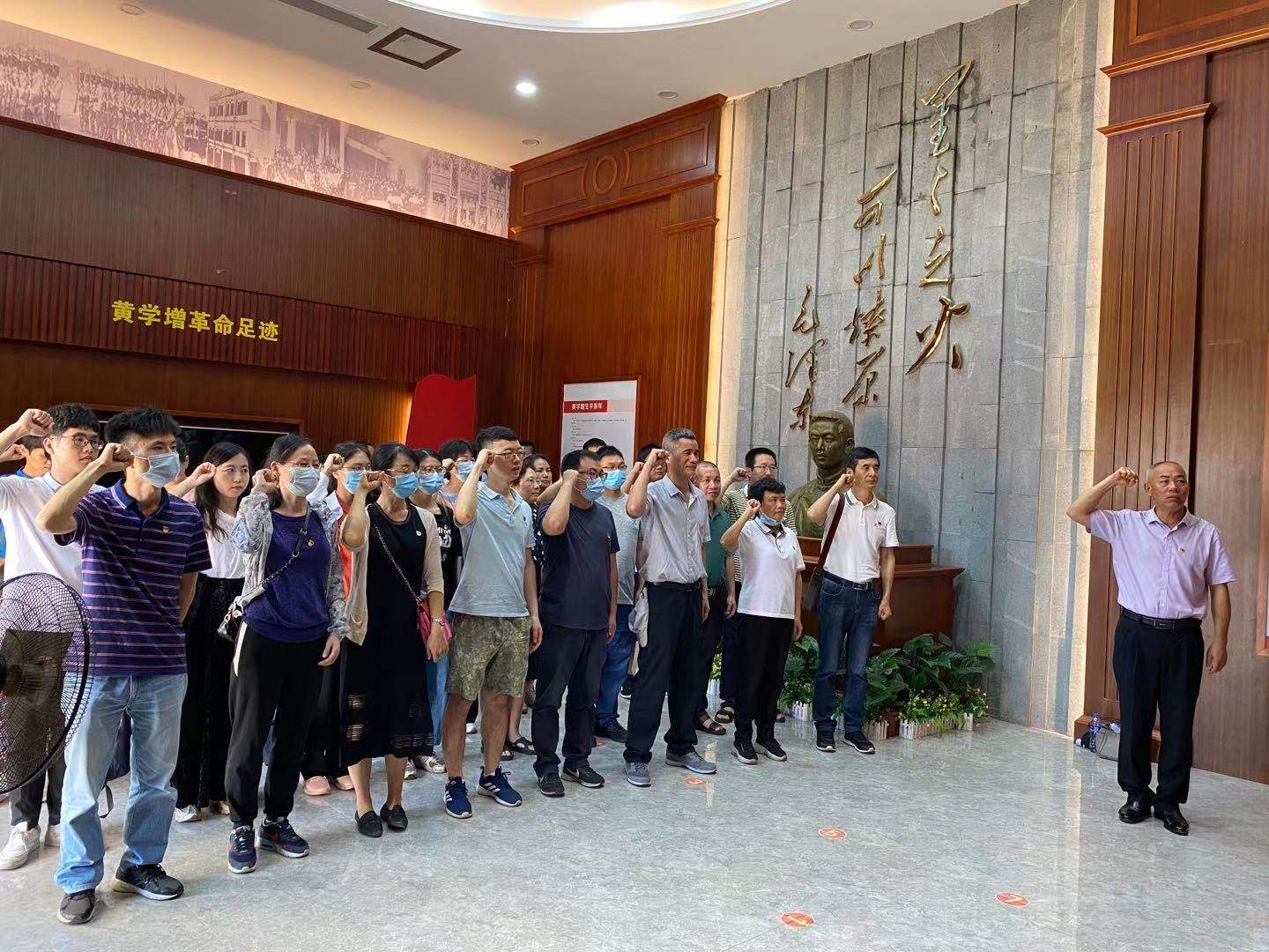 在纪念馆内,陈晓书记为师生上了一堂主题为《学习党史,传承革命精神》的现场教学党课,陈晓书记介绍了黄学增英雄事迹,黄学增是广东南路革命先驱、大革命时期广东省四大农运领袖之一,是土地革命时期广东西江和海南岛红军创始人之一,1929年7月由于叛徒出卖,在海口英勇就义,时年29岁;陈晓书记以史实阐述了党的革命精神谱系及其丰富内涵,号召党员同志和教职工要铭记历史,做新时代的奋斗者,深刻认识只有中国共产党才能领导中国,只有社会主义才能救中国,只有坚持和发展中国特色社会主义才能实现中华民族伟大复兴。