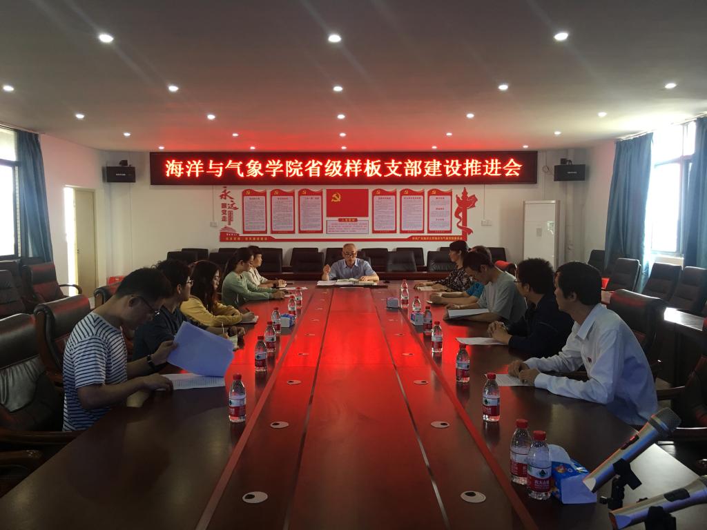会上,组织员马登值介绍了样板支部工作室的布置建设情况、兄弟院系样板支部的经验做法以及建设思路,海洋科学系教工党支部书记谢辉介绍了支部建设筹备情况和下一步工作计划,与会人员就创建工作展开热烈讨论,积极建言献策。
