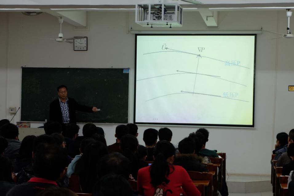 上午,两位专家与学院张书文院长、徐建军教授、凌征研究员在海博楼会议室就“海洋上层混合过程参数化及实验验证”课题进行研讨,对课题进展提出了很多宝贵的意见。下午,侯一筠研究员与杨永增研究员在第二教学楼B1202分别作学术报告,报告厅座无虚席,学院100余名教师、研究生和本科生现场聆听了报告。侯一筠研究员在所做的题为《全球气候变化下的海气耦合系统》的报告中指出了海洋动力研究的重要性与实用性,并由浅到深的介绍了当前背景下的海气耦合系统;杨永增研究员则做了题为《MASNUM海浪数值模式及耦合作用》的报告,系统介绍了MASNUM海浪数值模式的定位、发展目标与应用。