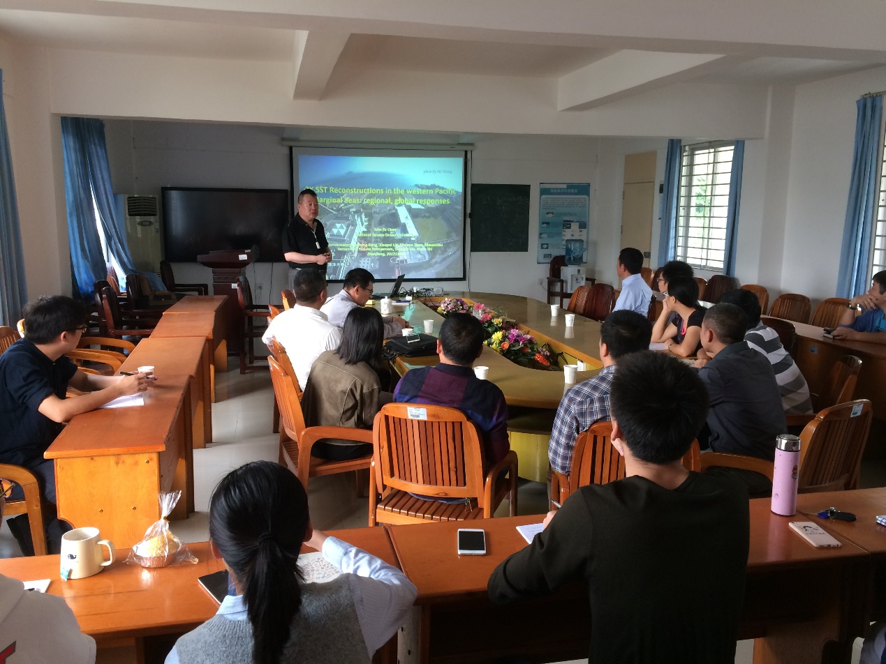 应william英国中文邀请,台湾海洋大学海洋科学与资源学院院长陈明德教授于11月4日至6日来williamhill英国访问,并做了题为“西太平洋边缘海2千年来的海表温度变化”的学术报告。报告介绍了西太平洋2千年的海表温度变化研究的最新进展,讨论河流冲淡水和黑潮形成的中层水对海表温度可能的影响,并介绍一种新的误差分析方法对数据进行评估。报告后陈明德教授参观了海洋地质实验室,并与海洋地质方向的教师交流了加深科研合作和互派交换生的计划。