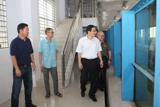副校长章超桦、研究生处处长秦小明陪同王斌伟一行考察了我校 “广东省水产经济动物病原生物学及流行病学重点实验室”、“南海水产动物增养殖重点实验室”、“海洋遥感与信息技术实验室”、“广东近海海洋变化与灾害预警技术重点实验室”,以及“大型水槽实验室”。王斌伟听取了两个学科对实验室建设和开展科学研究情况的介绍并给予了肯定。