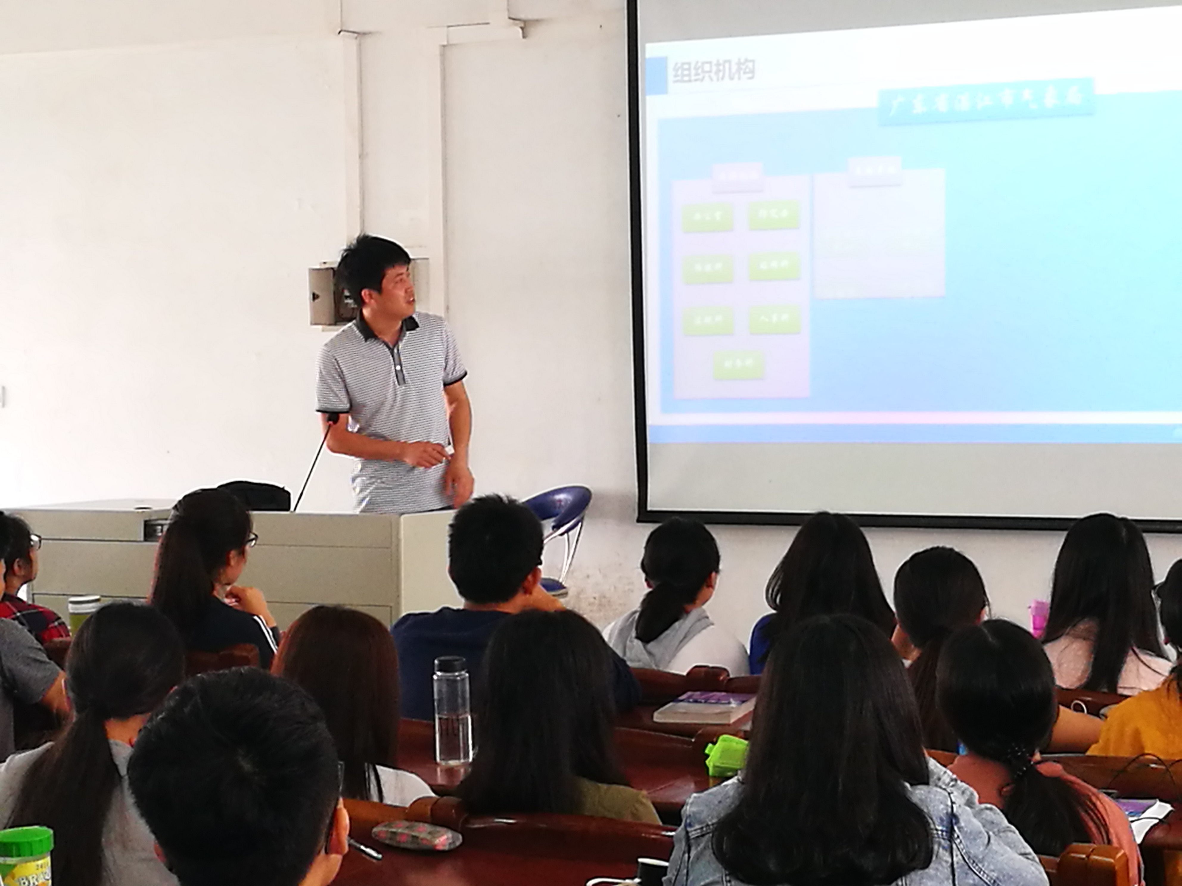 校友黄克鑫从航空气象观测及职业素养两个方面讲解,具体阐述了目前各地民航气象观测所采用的一些探测技术和技术手段、观测员的工作以及航空气象技术革新,并就工作经验介绍了目前航空气象急需的人才类型及其所需要具备的职业素养。校友张仲着眼于气象台预报及气象局招聘条件,结合实例讲解了气象会商的流程及注意事项,并就校园学习和生活给在校生提供了具有建设性的建议。