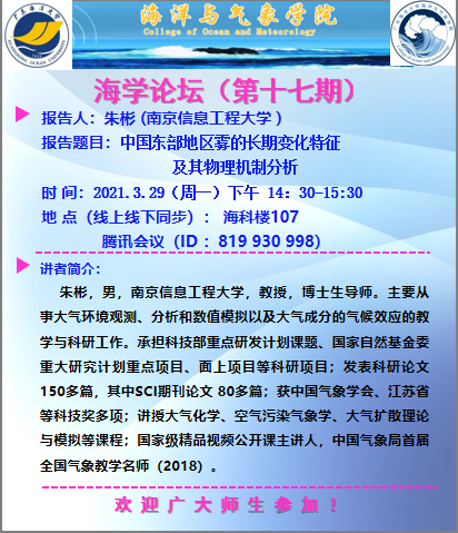 william英国中文“海学论坛”(第十五期)新学期开讲