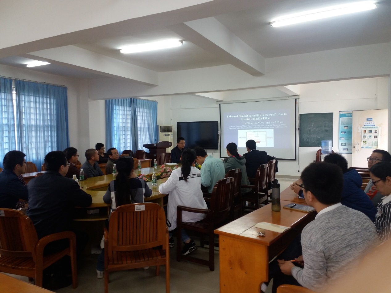 王磊副教授的这项研究目前已经在Nature子刊 Nature Communications发表。报告中王磊副教授详细讲述了大西洋“电容器”效应的新概念以及其对太平洋气候的影响, 提出了太平洋-大西洋相互作用可以产生太平洋(包括厄尔尼诺-南方涛动(ENSO)和西北太平洋副热带高压)准两年周期变化的新观点。此外,王磊副教授还分享了此项研究在写作、投稿、审稿、修稿过程中的经验心得,详细介绍了审稿和修稿过程中遇到的问题和取得的进步,给大家提供了论文写作与投稿的宝贵经验。王磊副教授的精彩报告深入浅出、通俗易懂,现场气氛热烈,引起了广大师生极大的兴趣。