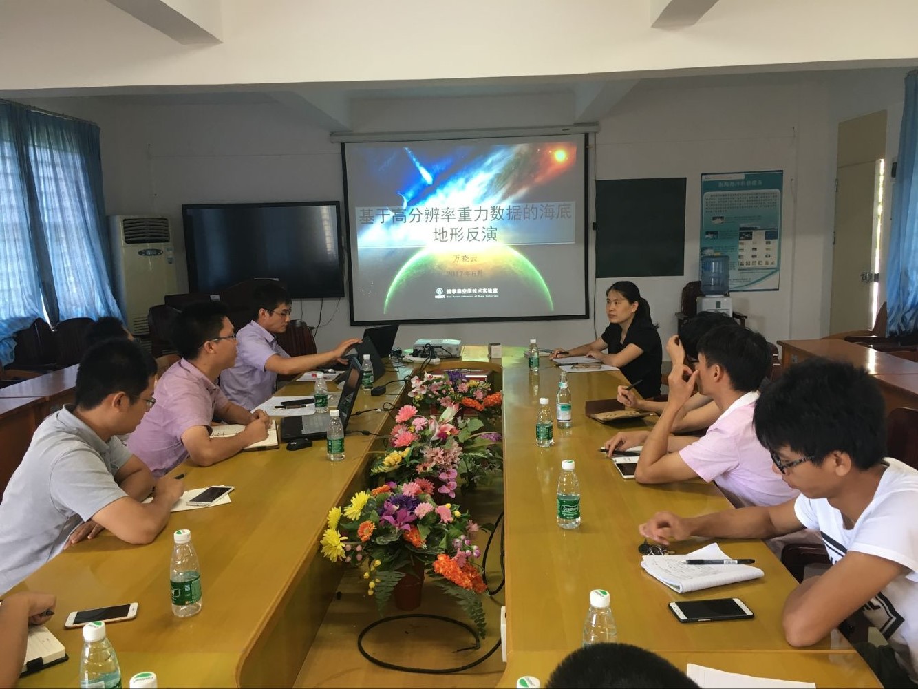 会上,谢玲玲首先介绍了我院海洋科学物理海洋方向的科研发展情况和部分成果,之后,刘波、陈亮对钱学森空间技术实验室的基本情况和创新工作进行了介绍,万晓云做了题为“基于高分辨率重力数据的海底地形反演”的报告,王成做了题为“星载全极化SAR的电离层探测技术与研究”的报告。双方就遥感技术与海洋观测间的联系与相互应用等进行了深入探讨,在座师生就报告内容和相关科学问题进行提问交流,现场气氛热烈,取得了良好的学术交流效果,让现场师生们受益匪浅。