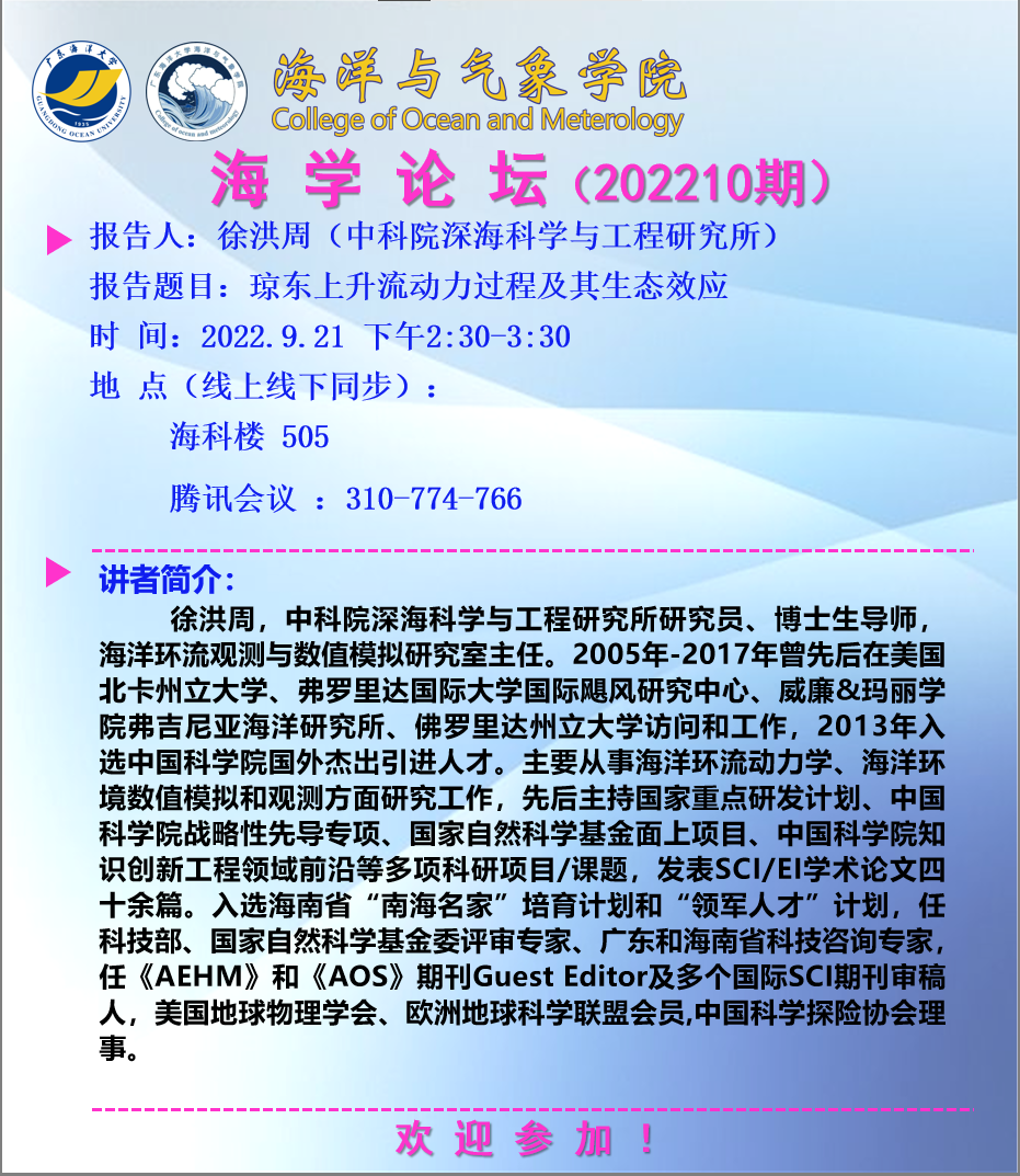【学术报告预告】william英国中文“海学论坛”(202210期)