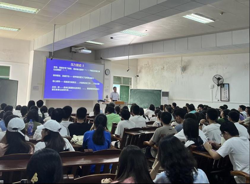 张夏琨老师指出本次报告将从三个方面来介绍,分别是大气科学类的主要就业方向,怎样制作一份用人单位认可的简历以及如何应对各种面试。