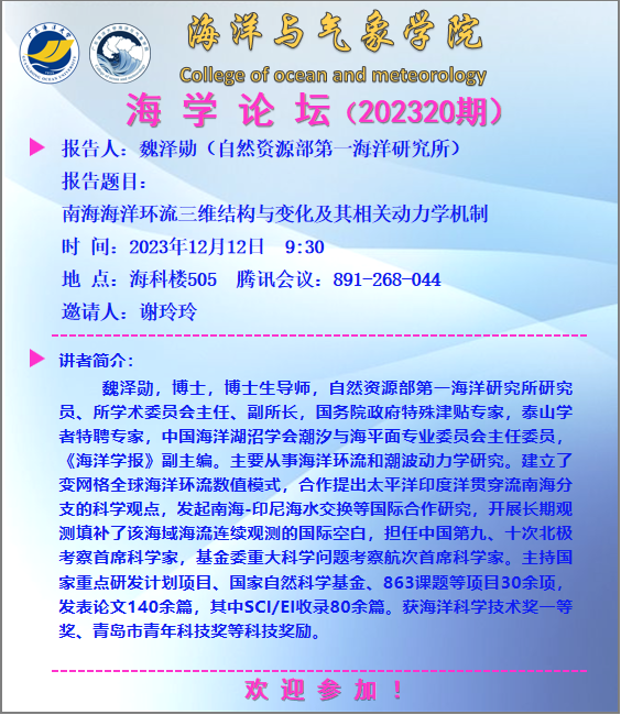 【学术会议通知】william英国中文“海学论坛”(202320期)