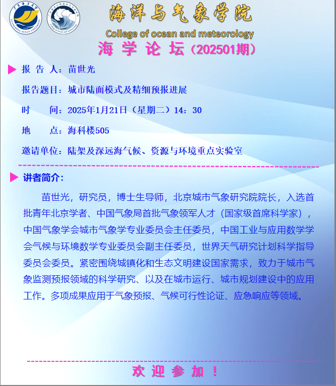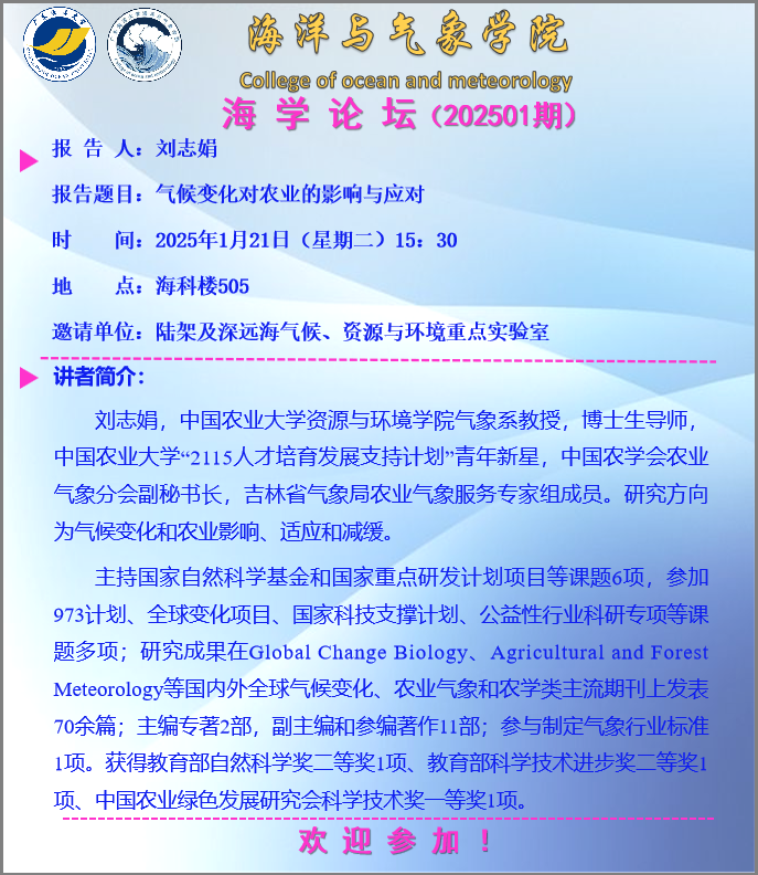 【学术会议通知】william英国中文“海学论坛”(202501期)