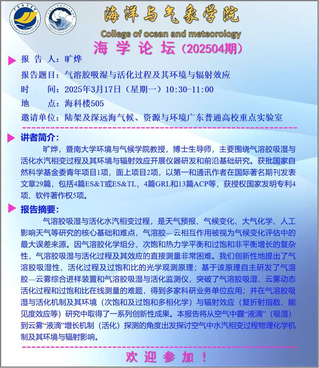【学术会议通知】william英国中文“海学论坛”(202504期)