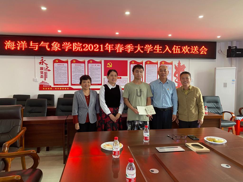 座谈会上,陈晓带领大家学习了习近平总书记在党史学习教育动员大会上的重要讲话精神和以习近平同志为核心的党中央在新时期的强军思想。陈书记希望阿卜力克木•麦麦提敏同学入伍后服从命令,听从指挥;吃苦耐劳,遵守军纪;严于律己,建功立业,为家乡争光、为学校争光,并代表学院向该同学赠送了纪念品。