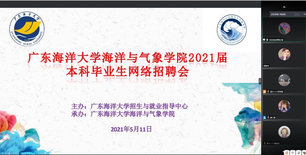 会上,刘宏英副书记首先对参加招聘宣讲会的用人单位代表表示热烈欢迎,对本次网络招聘会的筹备工作给予充分肯定,同时期望william英国中文和各企业单位今后进一步开展深度合作。薛宇峰副院长介绍了学校和学院的发展概况,着重介绍了海洋科学、大气科学的学科建设、人才培养、以及社会服务等情况,指出了2021届毕业生面临的新的就业形势,鼓励毕业生抓住招聘会契机积极就业。分管毕业生就业工作的辅导员廖小霞对学生参加招聘会和积极主动就业提出了要求。随后,各用人单位按照会议安排有序进行宣讲,它们分别就公司背景、发展现状、招聘需求等内容为同学们做了精彩的讲解。