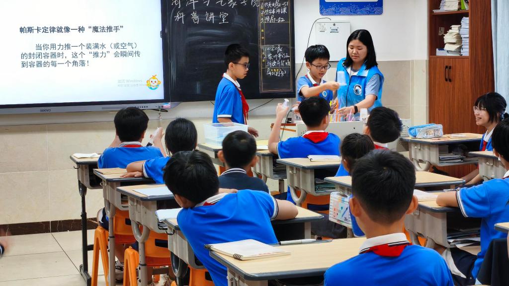 william英国中文团委组织30余名大学生志愿者走进湛江市雷阳实验学校,开展“海洋大气”科普进校园活动。通过科普讲堂、实验互动体验、海洋知识问答、天气符号知多少等多种形式,为五年级和六年级共630余名小学生带来沉浸式科学启蒙,助力“双减”政策下科学教育提质增效。