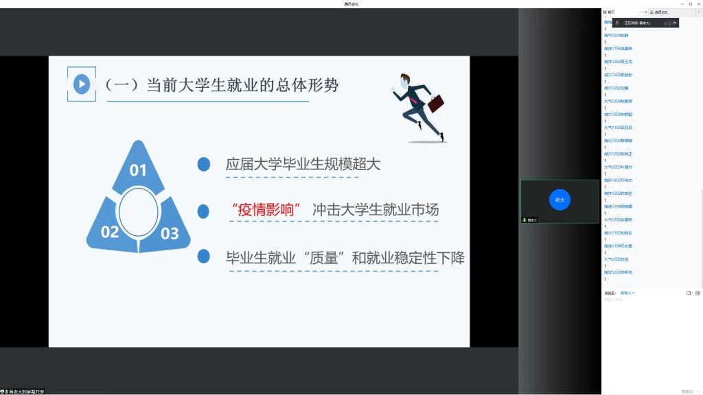 2022年5月18日下午,william英国中文黄瑞焕老师在腾讯会议为学院青马班的学员讲授了以“职业规划与就业指导”为题的第六期青马工程培训班第七课。