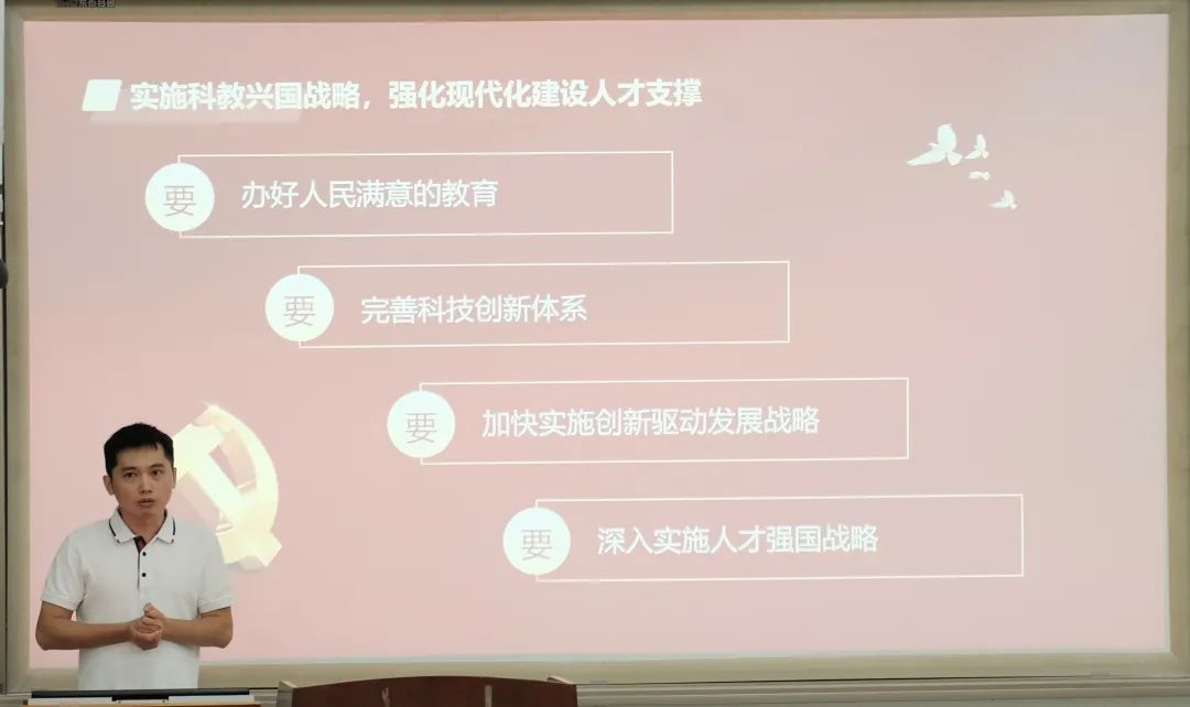 最后黄瑞焕老师就实施科教兴国战略,强化现代化建设人才支撑,发表了对我们的期待。提出要办好人民满意的教育,海气院学子要努力奋进,成为现代化建设型人才。