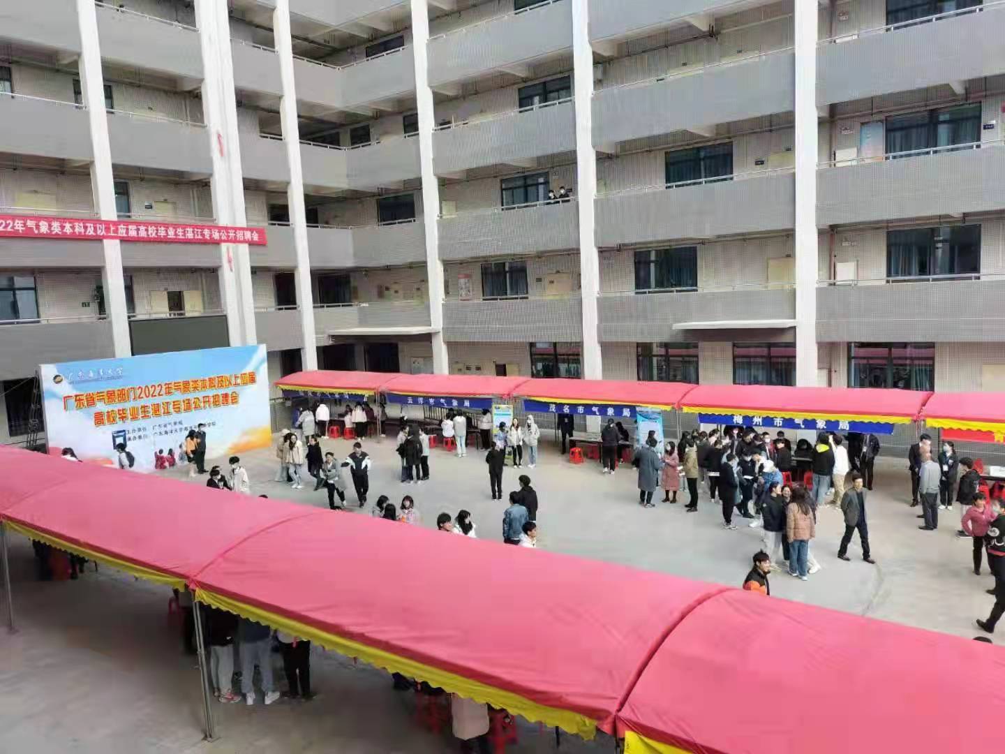 2021年12月30日,广东省气象局人事处组织韶关、河源、梅州、江门、湛江、茂名、肇庆、云浮、汕尾等九个地市气象局到我校举行气象类专业毕业生专场招聘会,本次招聘共为毕业生提供30个就业岗位。本次招聘采用直接面试的方式进行,这是广东省气象局第一次采用直接面试的方式招聘本科毕业生。