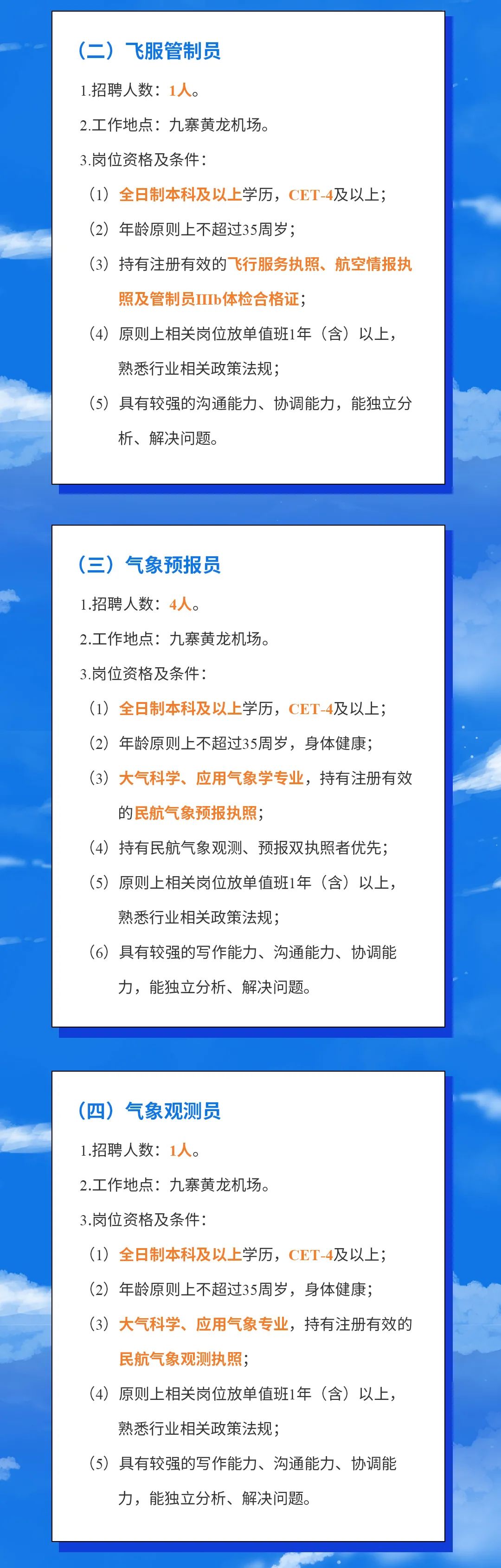 四川九寨黄龙机场有限责任公司2021-2022年招聘公告(含气象)