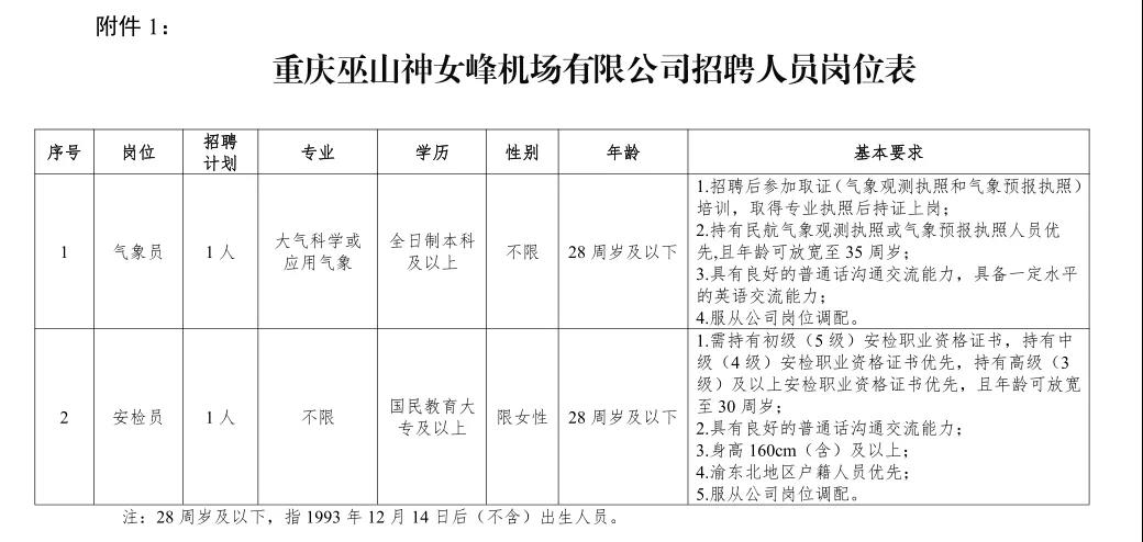 (三)因巫山机场的行业和管理特殊性,应聘人员需服从公司岗位调配和一岗多职工作安排。