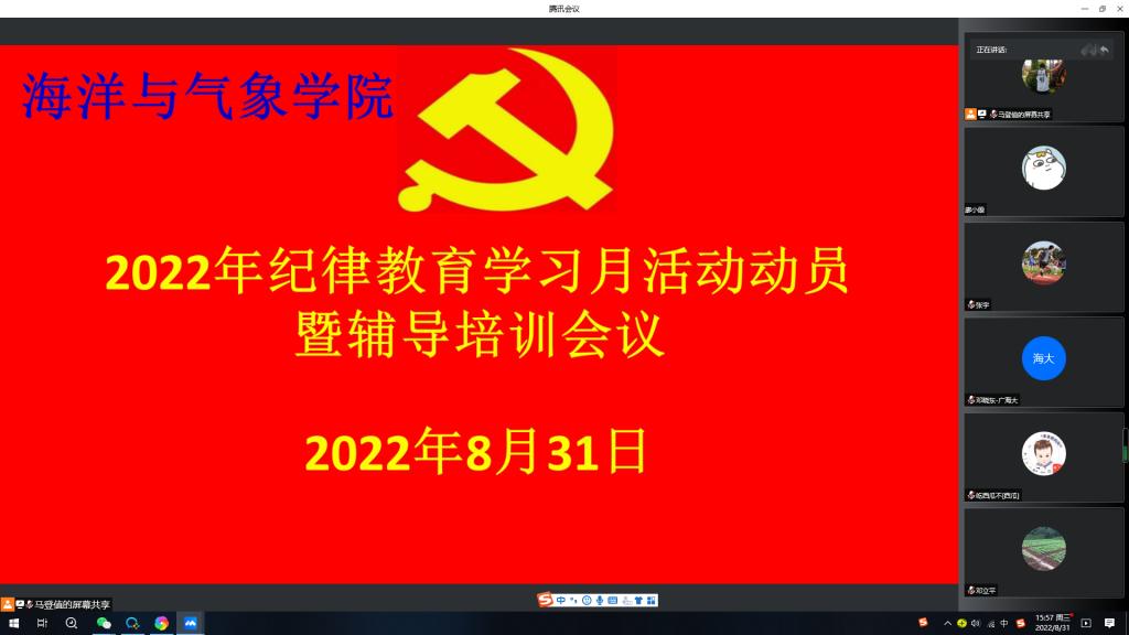 8月31日下午,学院线上召开2022年纪律教育学习月活动动员暨辅导培训会,学院领导、党委委员、纪委委员、副科级以上干部和全体教工党员50人参加,党委书记陈晓作动员讲话暨专题辅导报告,党委委员林海峰对学院2022年纪律教育学习月活动作安排,副院长陈法锦主持会议。
