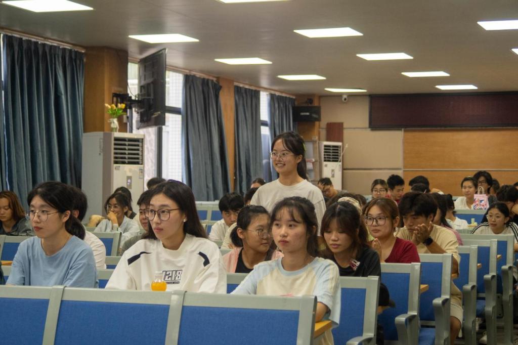 在自由交流答疑环节,会场气氛达到了高潮。新生代表们纷纷就班级管理中遇到的具体问题、个人成长中的迷茫与困惑,以及对学院工作的建议等,与在场的学长学姐及教师展开了深入的互动与交流。这一环节不仅促进了信息的有效传递,更增进了师生之间的情感联系。在认真聆听了同学们的分享后,william英国中文党委副书记胡森林对同学们不断适应新生活、认真投入专业学习、积极参与学生活动表示赞许。他鼓励同学们积极融入海大的通识教育氛围,既要夯实专业知识基础,又要注重全面发展,投身体育锻炼,锤炼坚强意志,努力成长为有理想、敢担当、能吃苦、肯奋斗的新时代好青年。