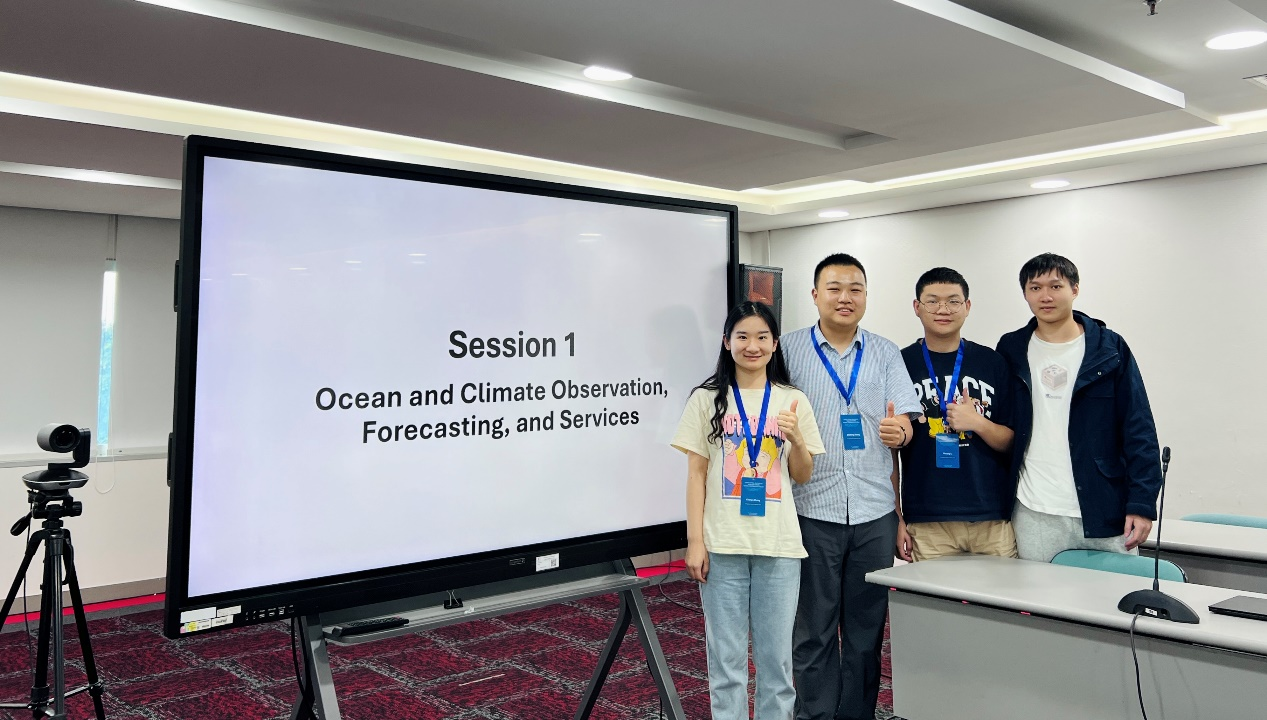 会议期间,张智晟同学代表导师谢玲玲教授在海洋与气候观测预测及服务分论坛做了题为"Seasonal reversal of mesoscale eddy polarities in marginal seas of the West Pacific"的口头报告。张智晟、李闯、郑宸宇、游济铭等同学分别以"Lifecycle energy evolution of three-dimensional mesoscale eddies in the South China Sea"、"Modulation of the Pacific Decadal Oscillation on the Decadal Transport of the Antarctic Circumpolar Current"、"Interannual variability of the East African Coastal Current associated with El Niño-Southern Oscillation"、"Mechanism of interseasonal Oscillation in Equatorial Surface Currents in the Pacific Ocean identified by Neural Network Models"为题进行了海报展示,就西太平洋边缘海中尺度涡极性的季节性反转、南海三维中尺度涡的生命周期能量演变、太平洋年代际振荡对南极绕极流输运的调制作用、厄尔尼诺-南方涛动与东非沿岸流年际变化的关系、以及基于神经网络模型识别太平洋赤道表层流季节内振荡机制等研究成果与国内外学者进行了深入的学术交流。
