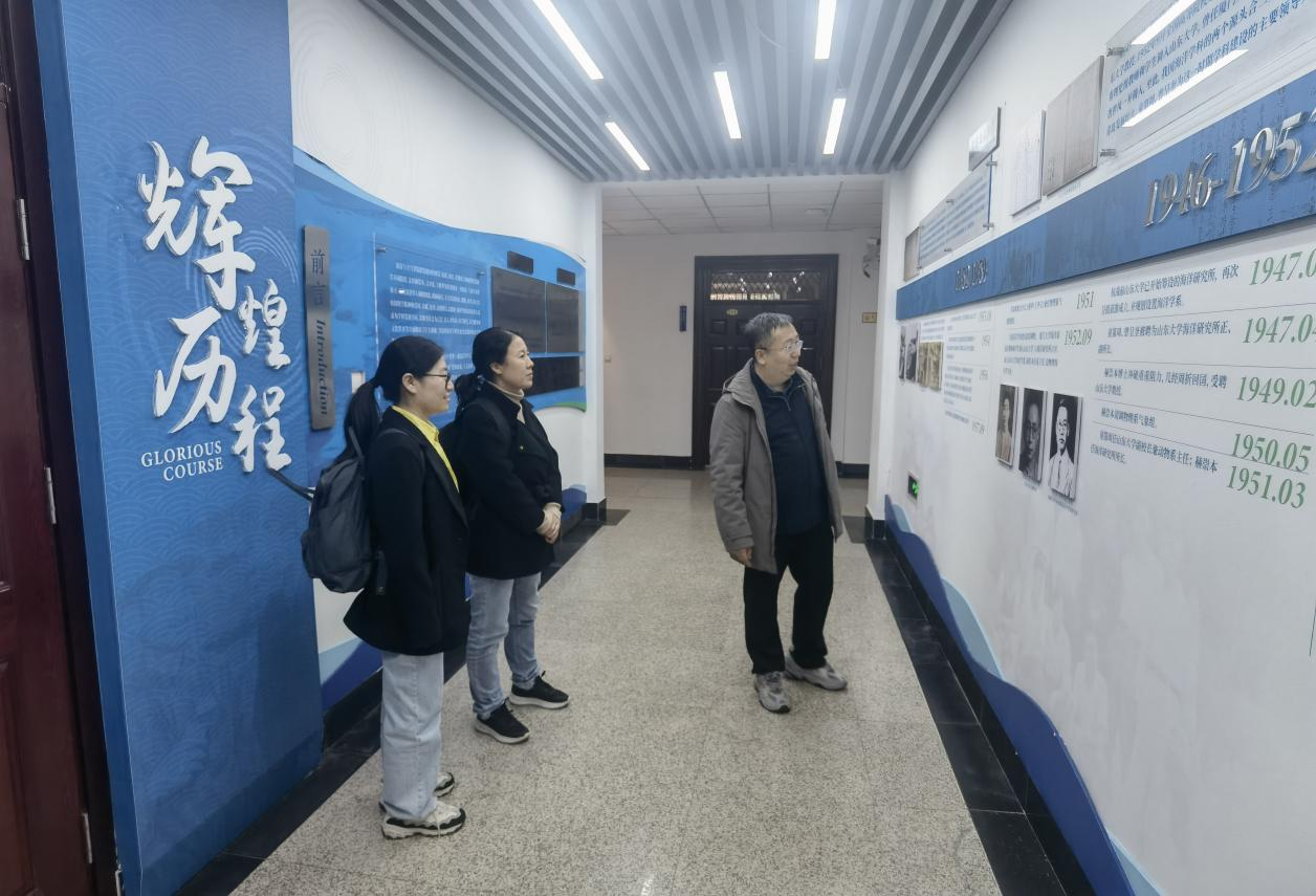 当天下午,侯庆华、胡耀强、李敏一行三人专程参观了中国海洋大学海洋学国家级实验教学示范中心。海洋与大气学院副院长陈旭热情接待了来访的三人。他深入浅出地讲解了学院的发展历程,详细介绍了先进的海洋调查设备和多种创新型流体力学设备,并分享了实验室高效运行的管理模式与创新举措。双方就本-硕-博贯通的海洋科学实践创新型人才培养体系设置、课程优化、教学手段及管理模式进行了深入的探讨。