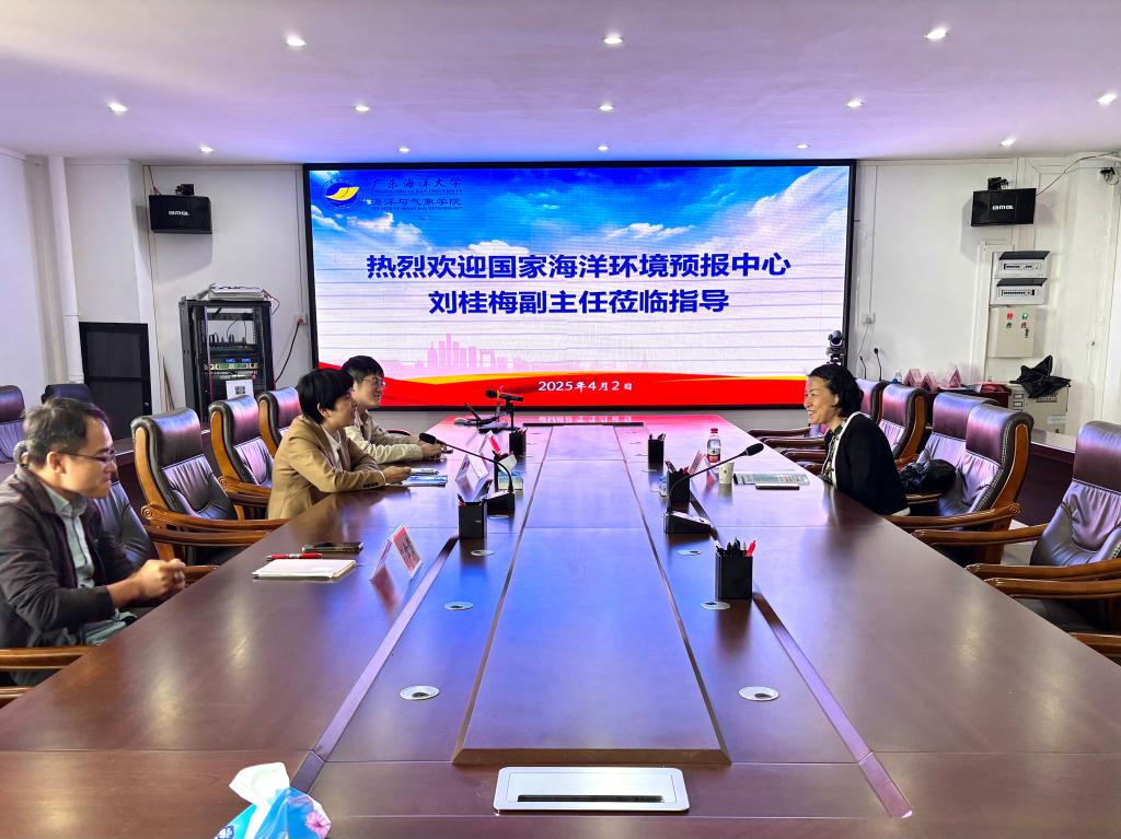 会上,谢玲玲院长对刘桂梅副主任的到访表示欢迎,并介绍了我院学科建设、科研成果及人才培养进展,强调深化与国家海洋环境预报中心合作对服务海洋强国战略的重要意义。刘桂梅副主任对我院的热情接待表示感谢。她指出,双方可以通过联合培养、实习等方式,培养更多具有实践经验的海洋科学人才;在科研合作方面,需推动海洋观测与数值模式协同创新,促进数据驱动与数值模拟的融合应用。