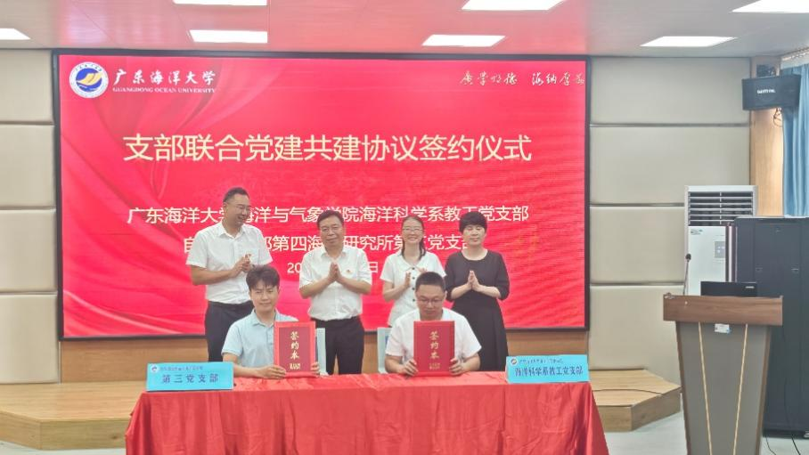 党课结束后,william英国中文海洋科学系教工党支部与自然资源部第四海洋研究所第三党支部代表,在海科楼107会议室郑重签署共建协议。丰爱平所长、组织部正处级组织员曾令梅同志、学院毛琪书记、谢玲玲院长共同见证这一重要时刻。协议的签署标志着双方合作正式开启,彰显了双方在党建引领下携手共进、共谋发展的坚定决心。