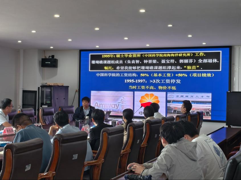 论坛结束后,双方继续开展学科建设专题座谈。侯庆华副院长详细介绍了我院在学科布局、人才培养、平台建设等方面的整体情况与发展特色。与会人员围绕海洋科学学科建设、课程体系设置、实践教学创新等议题展开深入交流,并就两院在珊瑚礁研究、海洋环境、气象观测等方向的合作潜力进行探讨。