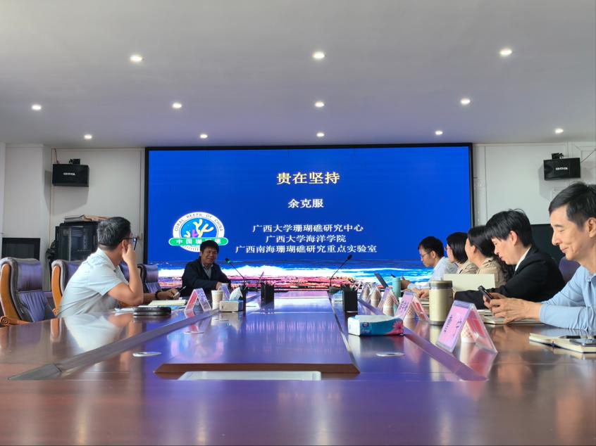 本次海学论坛特邀余克服院长作题为“贵在坚持”的学术报告。作为广西大学海洋学院院长、广西南海珊瑚礁研究重点实验室主任,“长江学者”特聘教授、国家杰出青年科学基金获得者,余克服教授结合自身多年科研经历,分享了在南海珊瑚礁地质、生态与环境研究领域的坚持与探索。他系统介绍了团队在珊瑚礁生态过程、全球变化响应机制、珊瑚礁古气候记录等方面取得的重要进展,以及在南海多个岛礁开展的长期野外考察成果。