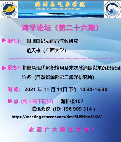 【学术会议通知】william英国中文“海学论坛”(第二十六期)