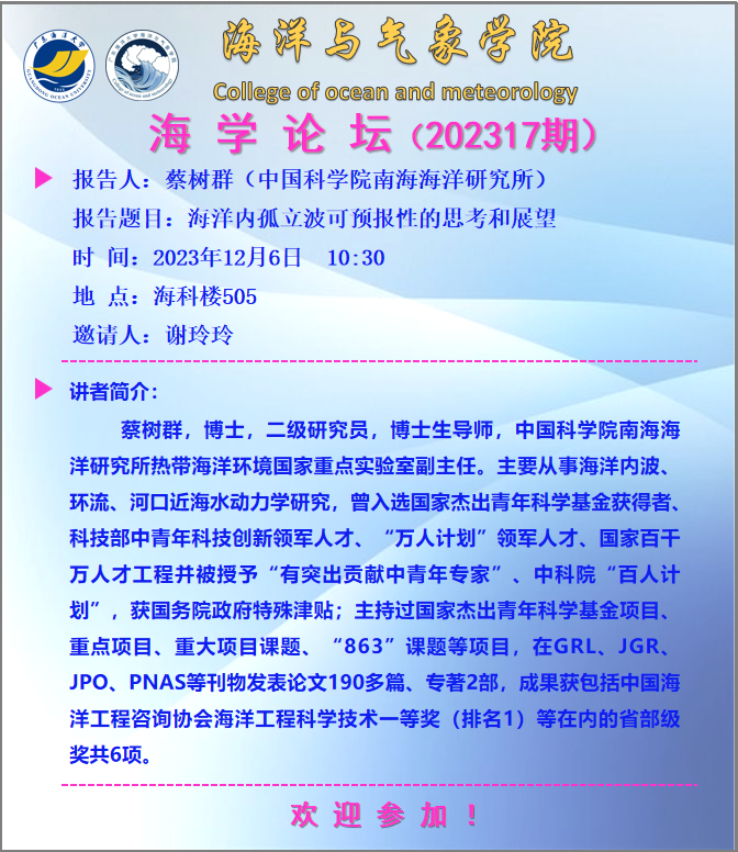 【学术会议通知】william英国中文“海学论坛”(202317期)