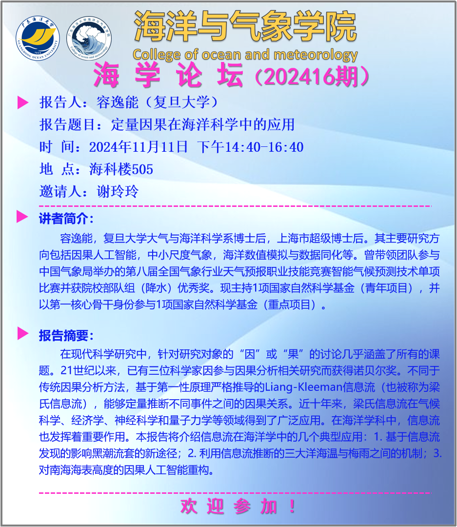 【学术会议通知】william英国中文“海学论坛”(202416期)
