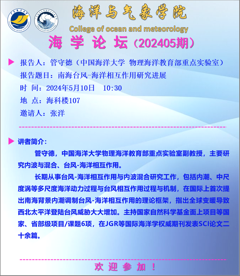 【学术会议通知】william英国中文“海学论坛”(202405期)