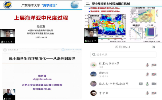 10月14日下午,william英国中文举行了第九期海学论坛,这次论坛有幸邀请到了中科院南海海洋研究所的经志友研究员以及合肥工业大学资源与环境工程学院的徐利强副教授。论坛由院长谢玲玲主持,海洋科学系的孔德明老师从旁协助,采用线上进行的方式,学院及学校部分师生参会人数共80余人。