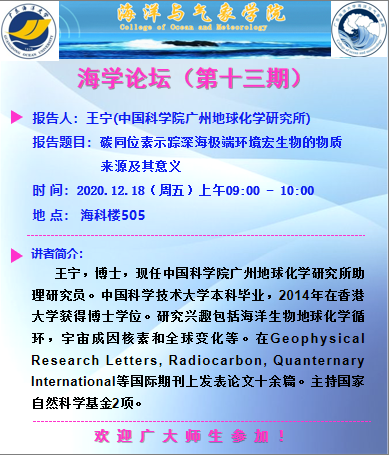 中国科学院海洋研究所侯一筠研究员应邀作学术讲座(预告)