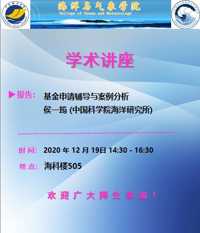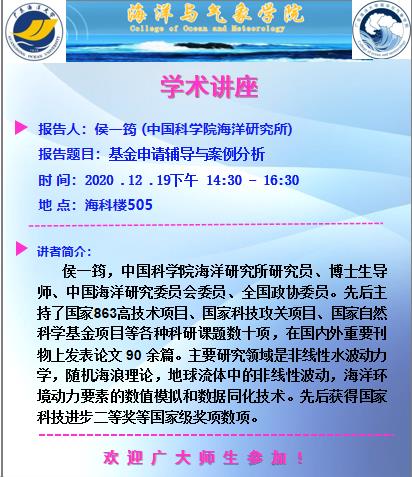 中国科学院海洋研究所侯一筠研究员应邀作学术讲座(预告)