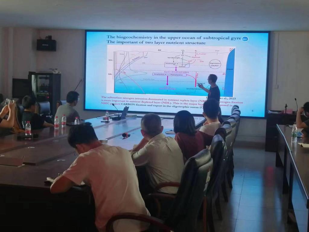厦门大学海洋与地球学院周宽波副教授做了题为“北太平洋亚热带环流圈的固氮作用及其对碳输出的影响”,发现较强的固氮作用并不一定导致高的有机碳输出,而有机碳的输出更多是跟营养跃层的转变有关。
