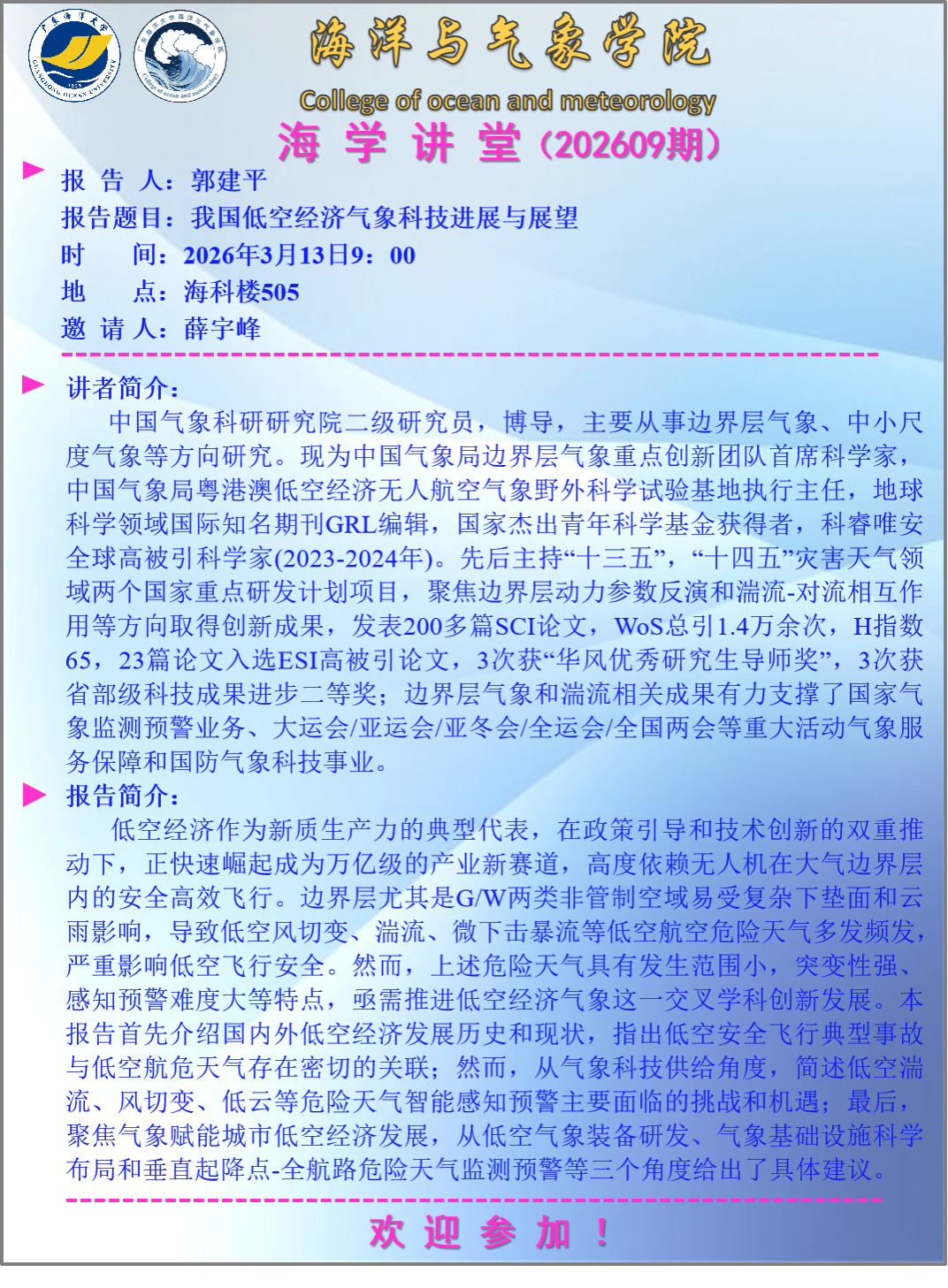 【学术会议通知】william英国中文“海学讲堂”(202609期)
