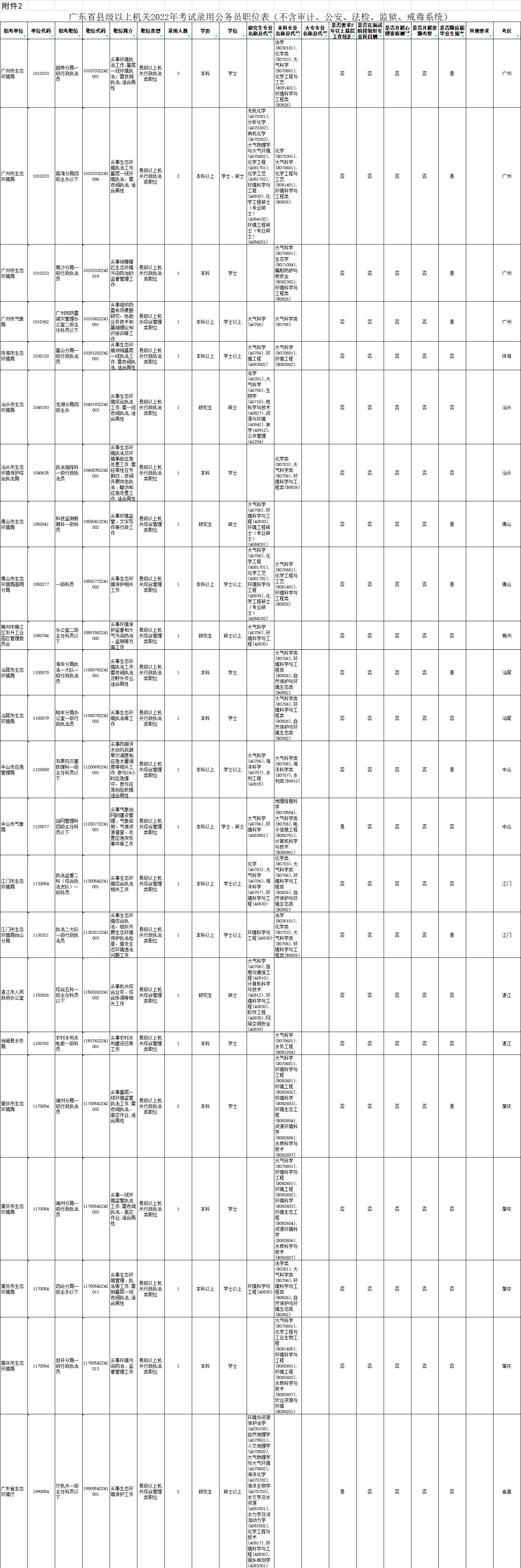 2.广东省县级以上机关和珠三角地区乡镇机关2022年考试录用公务员职位表