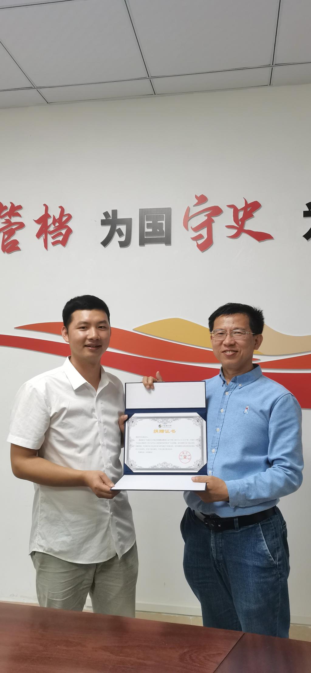 随后,孙学政馆长向刘志根颁发捐赠证书,并合影留念。