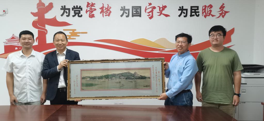 孙学政馆长热情接收了赠品,并对此次捐赠行为表示诚挚感谢。他指出,这块牌匾进一步丰富了校史馆的馆藏资源,将为学校历史文化的传承、研究与展示提供重要支持。接下来,校史馆将对牌匾进行妥善保存,并计划将其用于校史展览、学术交流等相关活动,助力学校历史文化的深入挖掘与传播。