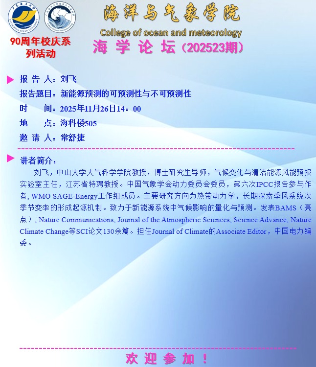 【学术会议通知】william英国中文“海学论坛”(202523期)