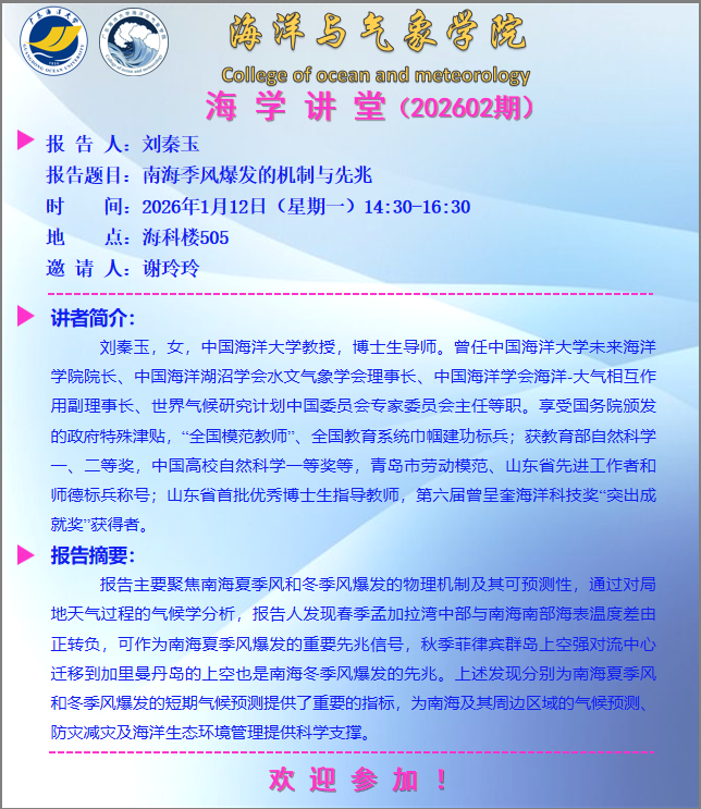 【学术会议通知】william英国中文“海学讲堂”(202602期)