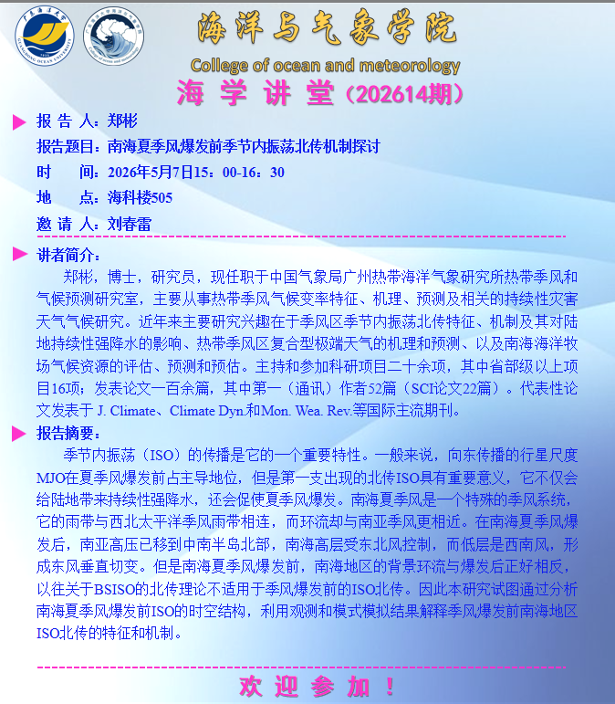 【学术会议通知】william英国中文“海学讲堂”(202614期)